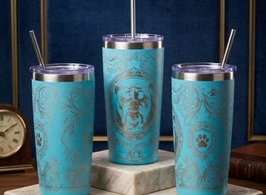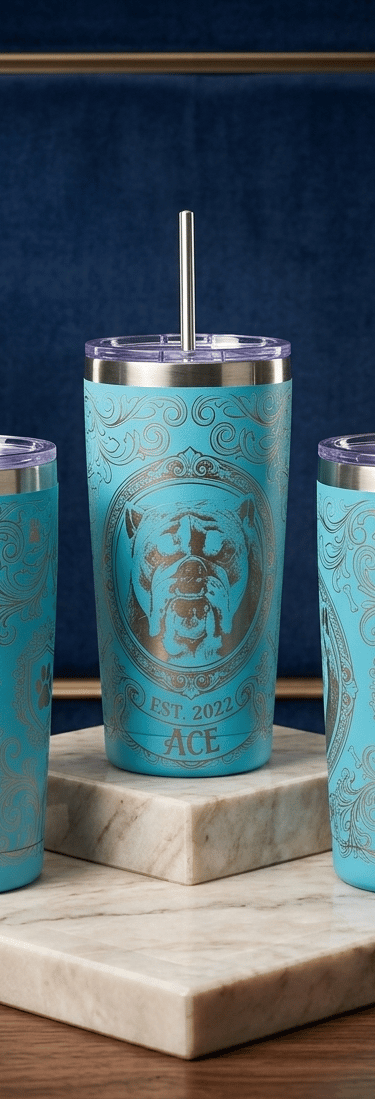 Custom engraved tumblers, pens, slate coasters, leather, and more!